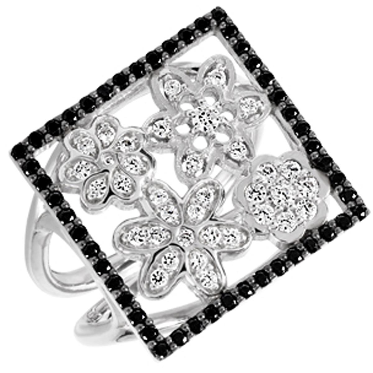 Серебряное кольцо Флора черно-белое