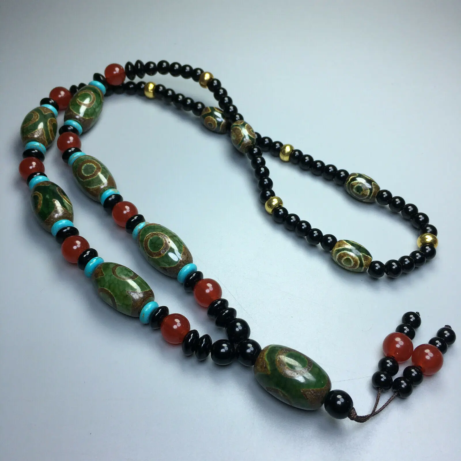 Ожерелье с подвеской дзи из тибетского старого агата с тремя зелеными глазами