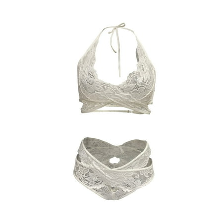 QIPOPIQ Lingerie for Women Clearance Ladies Fashion Sexy Lingerie Fishnets Lace Flowers Hollow Sexy Halter Neck Mesh Open Crotch Panties Suit