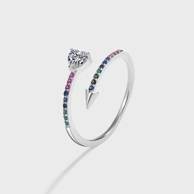 Серебряное кольцо с инкрустацией кубическим цирконием в форме сердца - Популярный стиль украшений для лучших друзей Adjustable Open Size