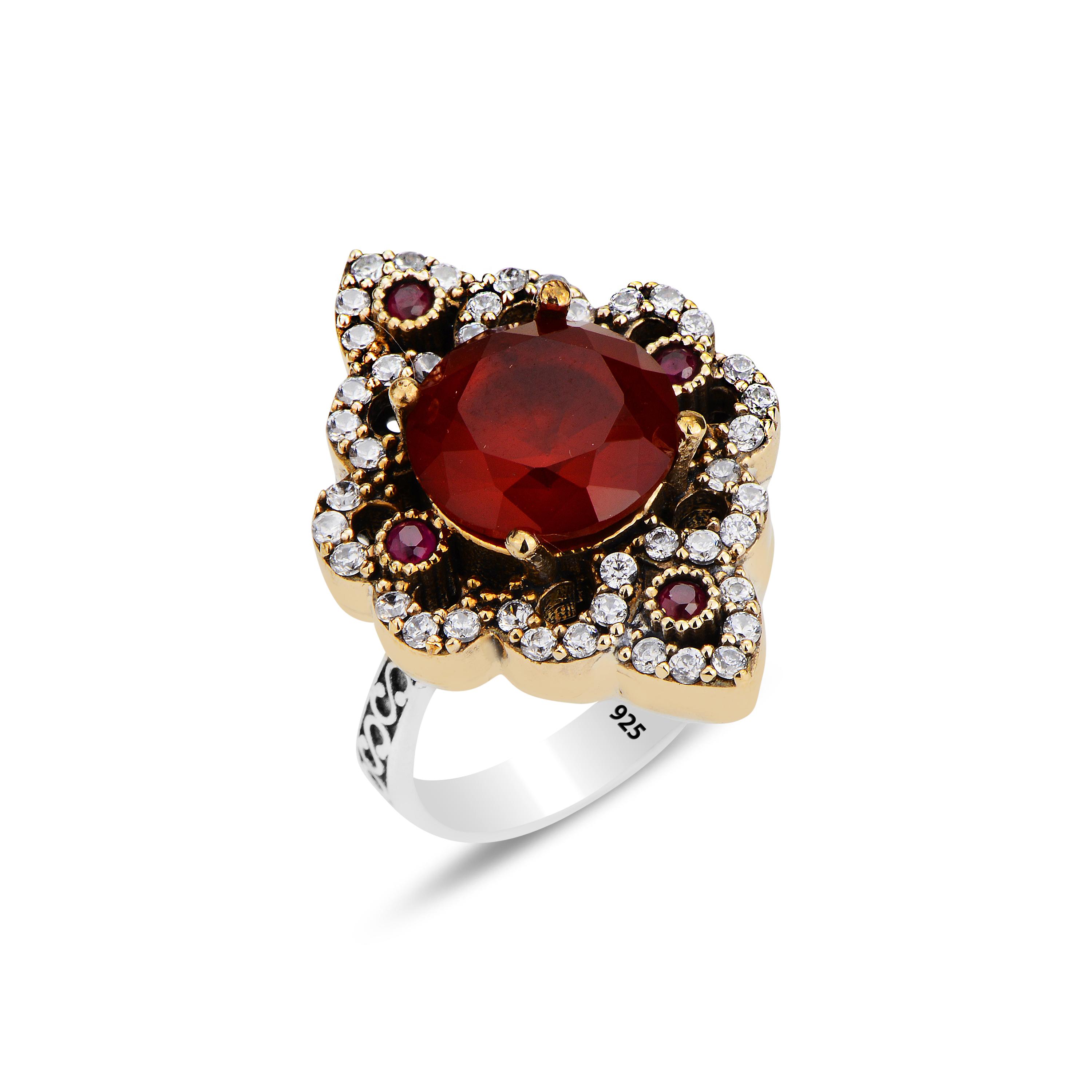 Серебряное кольцо с рубиновым камнем 925 карат, винтажное кольцо из серебра и бронзы ручной работы, уникальные женские украшения, ремесленный подарок для нее