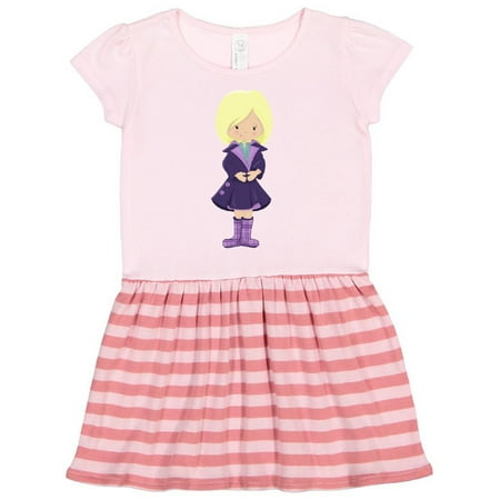 Inktastic Fashion Girl Blonde Hair Purple Coat Boots Gift Toddler Girl Dress