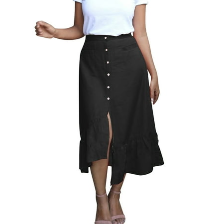 Womens Casual Solid High Waist Split Button Midi Skirt Leather Fringe Skirt Tulle Table Skirts for Rectangle Tables Pleated Denim Skirt Pencil Skirts for Women Long Skirt