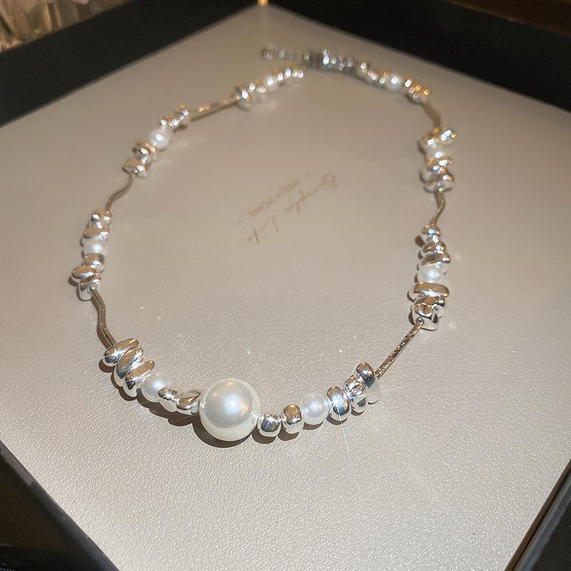 Серебряное ожерелье с имитацией жемчуга - Модное, высококлассное колье-цепочка на ключицу для женщин