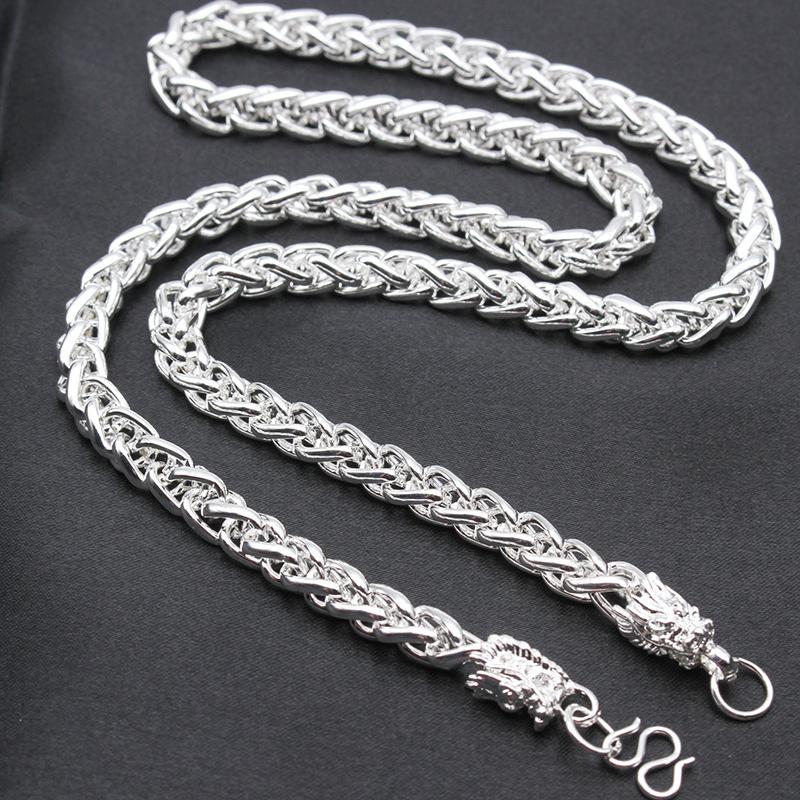 Серебряное ожерелье с серебряным покрытием, модное мужское серебряное ожерелье с узором из ткани «дракон», имитация серебряного крана, ожерелье, ювелирные изделия для мужчин