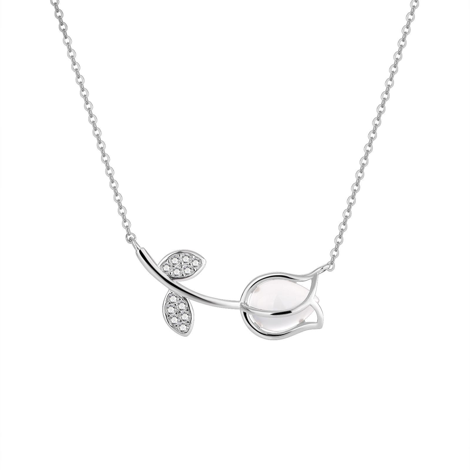 Серебряное ожерелье-тюльпан из халцедона S925, женское, летнее, легкое, роскошное, темпераментное, с высоким чувством, нишевая, цветочная цепочка на ключицу, серебряный подарок 925 Silver