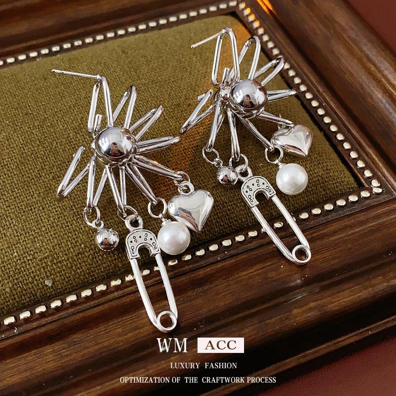 Серебряные игольчатые серьги Love Pin с жемчугом, легкие, роскошные, холодного стиля, преувеличенные, тяжелые промышленные серьги, высококачественные, универсальные, модные серьги серебряный