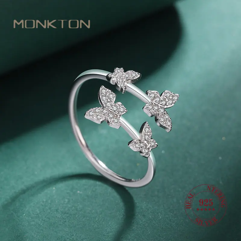 Серебряные кольца Monkton 925 пробы, оригинальное сертифицированное Открытое кольцо с бабочкой из циркония, простота, элегантное женское роскош...