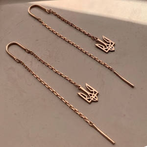 Серебряные серьги-протяжки двойные позолоченные без камней в форме герба Украины (7 см) ПЛ-080