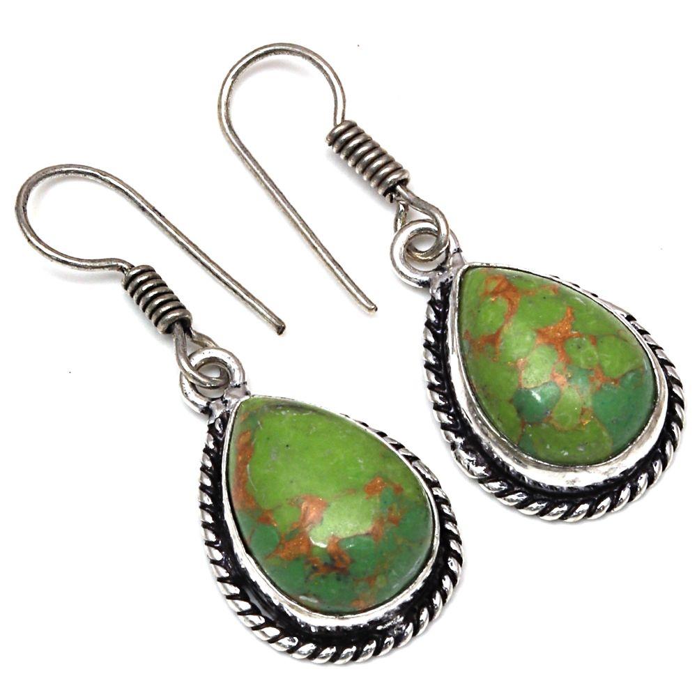 Серебряные серьги с драгоценными камнями бирюзового цвета в подарок для нее 1,5 дюйма