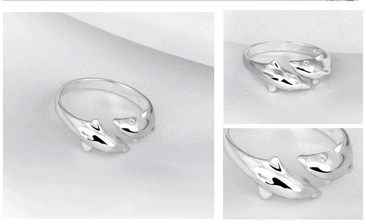 Серебряные ювелирные изделия открытые счастливые двойные дельфины любовные кольца для вечерние Женское подарок регулируемое кольцо кольц...