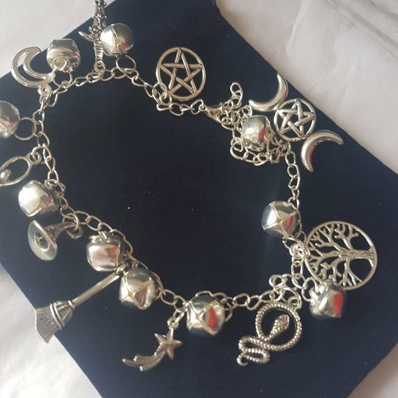 Серебряный браслет ведьмы с колокольчиками, чтобы очистить путь, по которому вы идете