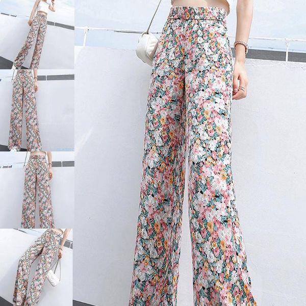women's pants & capris womens boho elastic high waist wide leg vintage colorful floral printed straight palazzo trousers casual loose l, Black;white