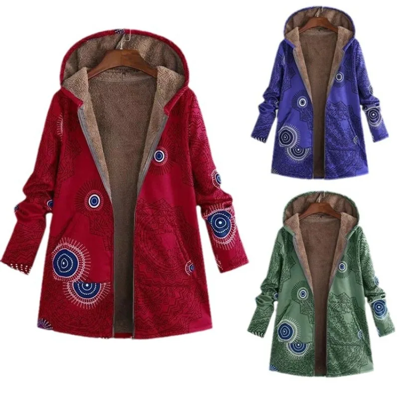 Серия курток 2025 года, новая женская зимняя теплая плюшевая куртка на молнии с капюшоном и принтом, льняно-хлопковые винтажные пальто, зимние женские парки