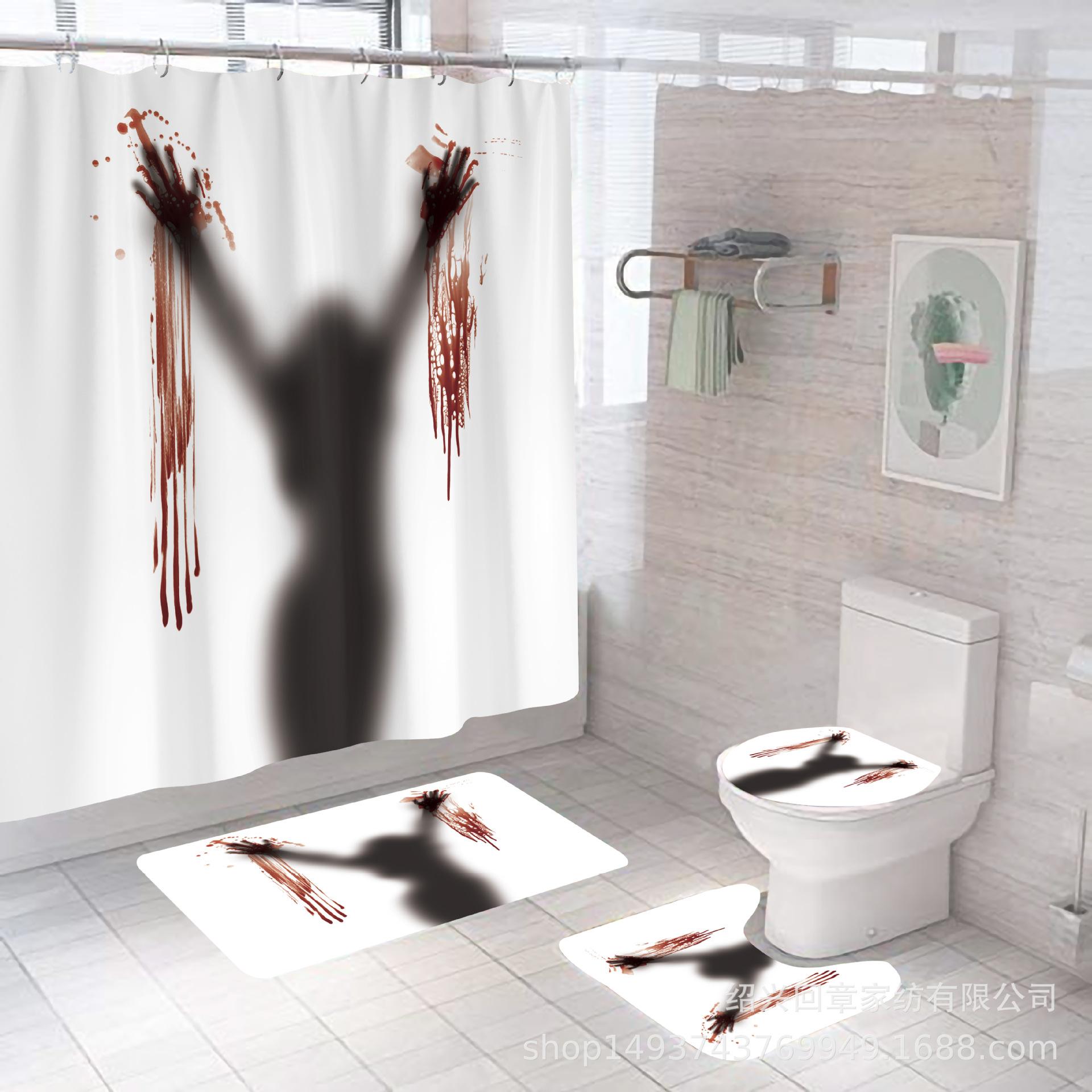Серия Blood Handprint, цифровая печать, невидимая занавеска для душа, водонепроницаемая и устойчивая к плесени, прозрачный крючок, набор из четырех перегородок для ванной комнаты