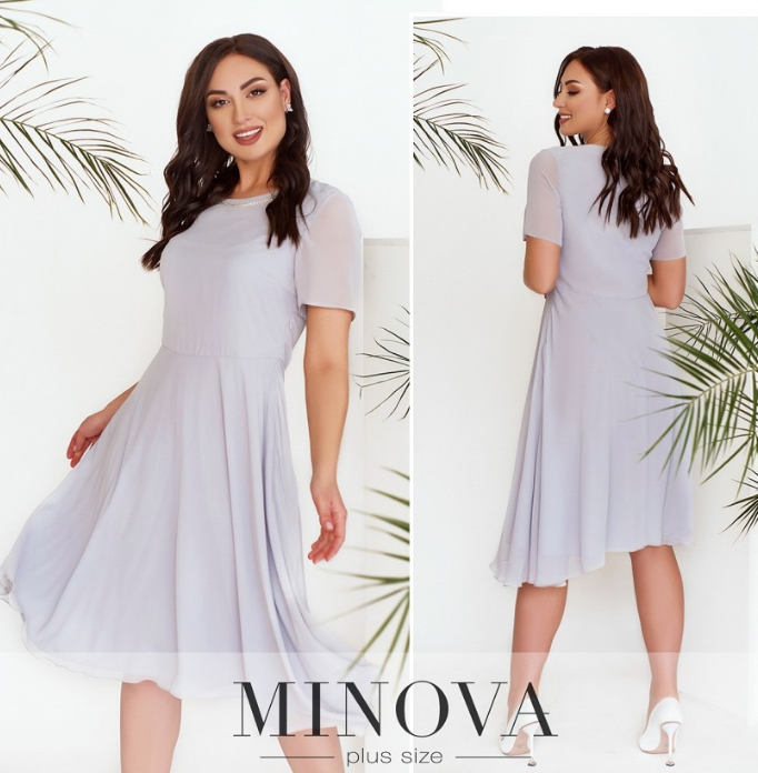 Серое шифоновое платье в большом размере Размеры: 48..54.