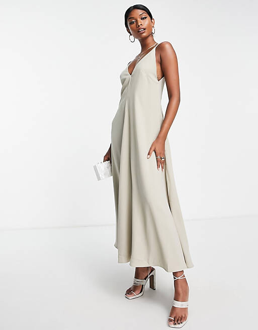 Серо-коричневое атласное платье миди на бретельках с v-образной спиной ASOS EDITION, Коричневый