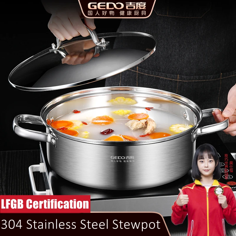 Сертификация LFGB Кухонная кастрюля из нержавеющей стали 304 Ультратолстая устойчивая к падению кастрюля для тушения 28 см со стеклянной крышкой