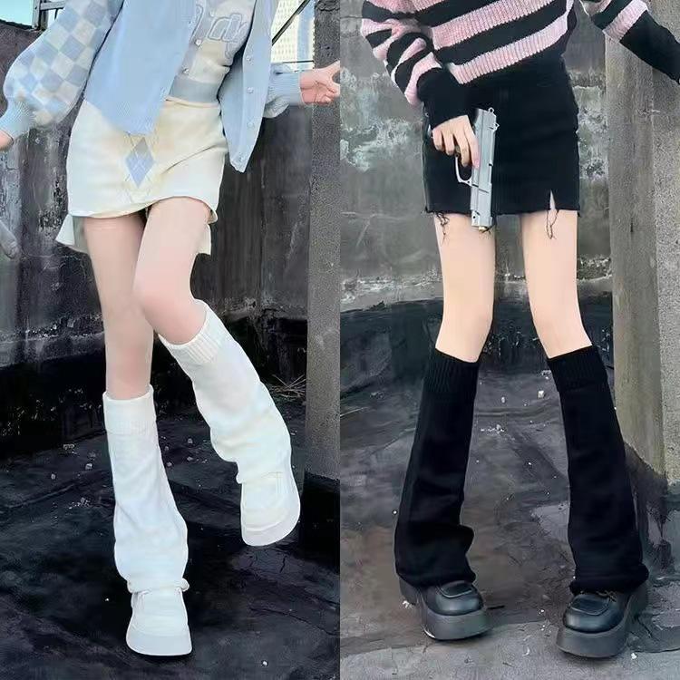 Серые вязаные расклешенные шерстяные носки: Однотонные зимние гетры для Hot Girl и JK Style One Size