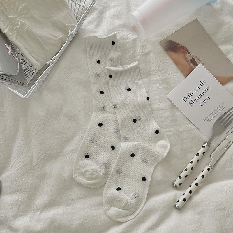 Серые носки Dui Dui, Женские летние тонкие хлопковые носки, Носки до середины икры, Сетчатые дышащие в горошек, Летние балетные длинные носки с отворотом 1 pair