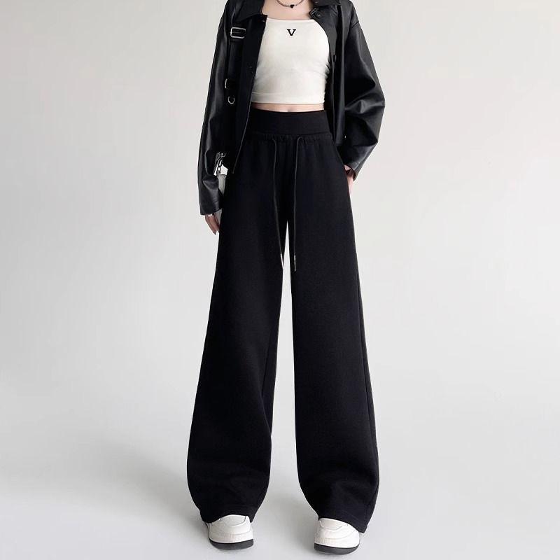 Серые спортивные штаны для женщин на весну и осень, новые американские ретро-повседневные прямые широкие брюки с эластичной резинкой на талии XL