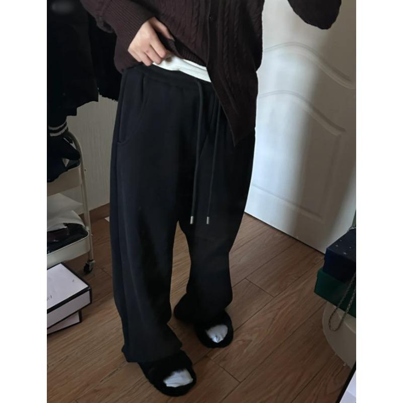 Серые толстовки для женщин Новый стиль Плюс бархатные утолщенные Супер толстые брюки из овечьей шерсти на осень и зиму Спорт и отдых 2XL