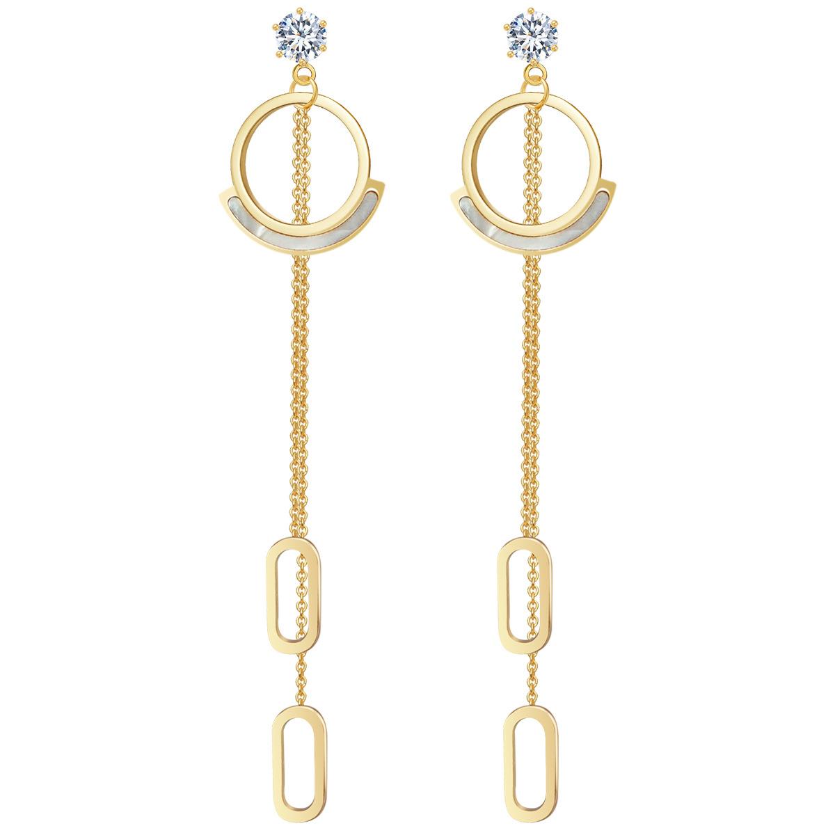 Серьги Ветер Моды Длинные Сказочные Полностью Белая Ракушка Нержавеющая Сталь Уши Бахрома Висячие Титановая Сталь