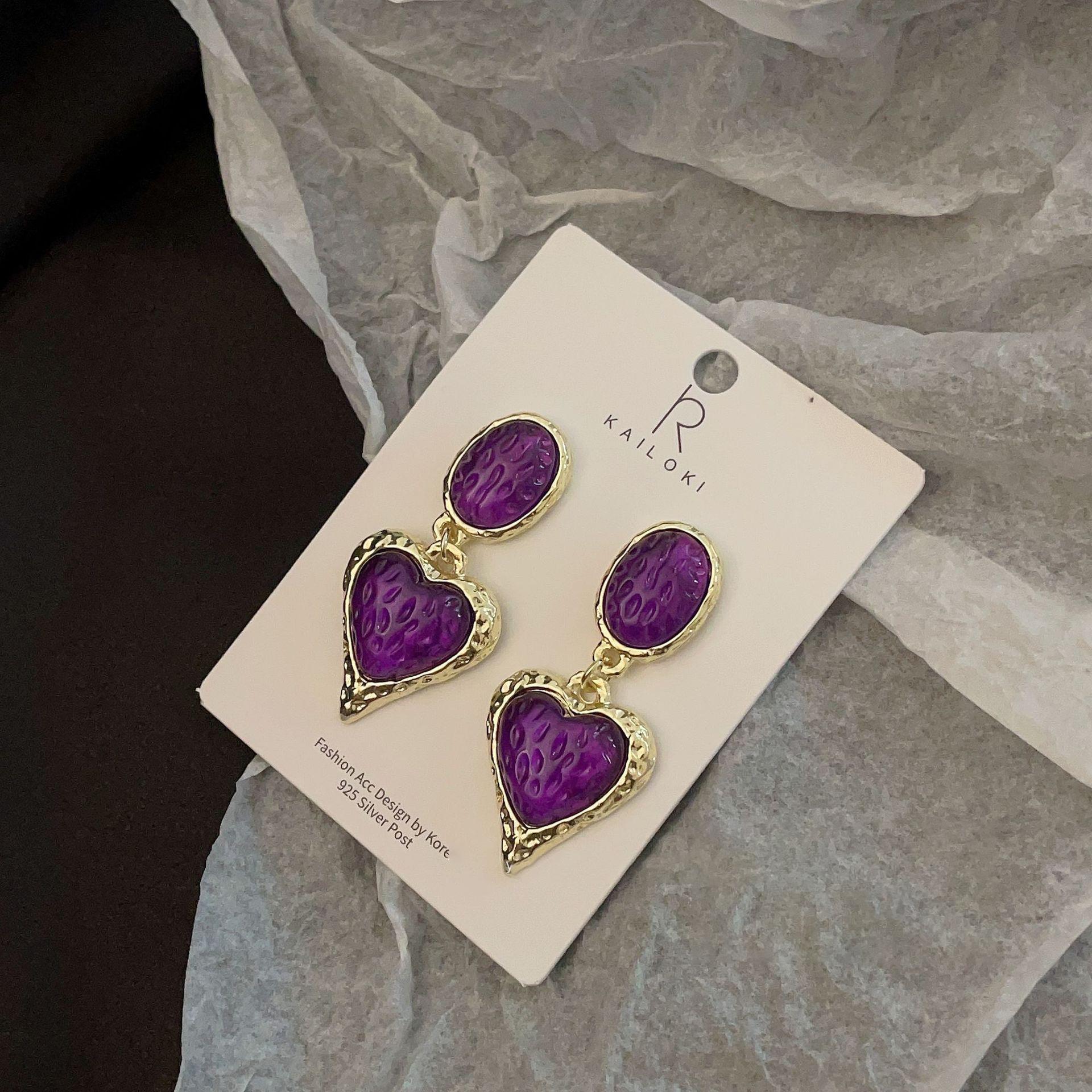 Серьги Сердце Уникальные 2023 Модные Геометрические Сплавные Украшения В Цветах Стильные фиолетовый
