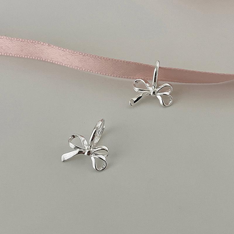 Серьги-бантики с лентой для женщин, изысканные серьги-кольца с пряжкой серебряного цвета, сладкие ювелирные изделия в подарок