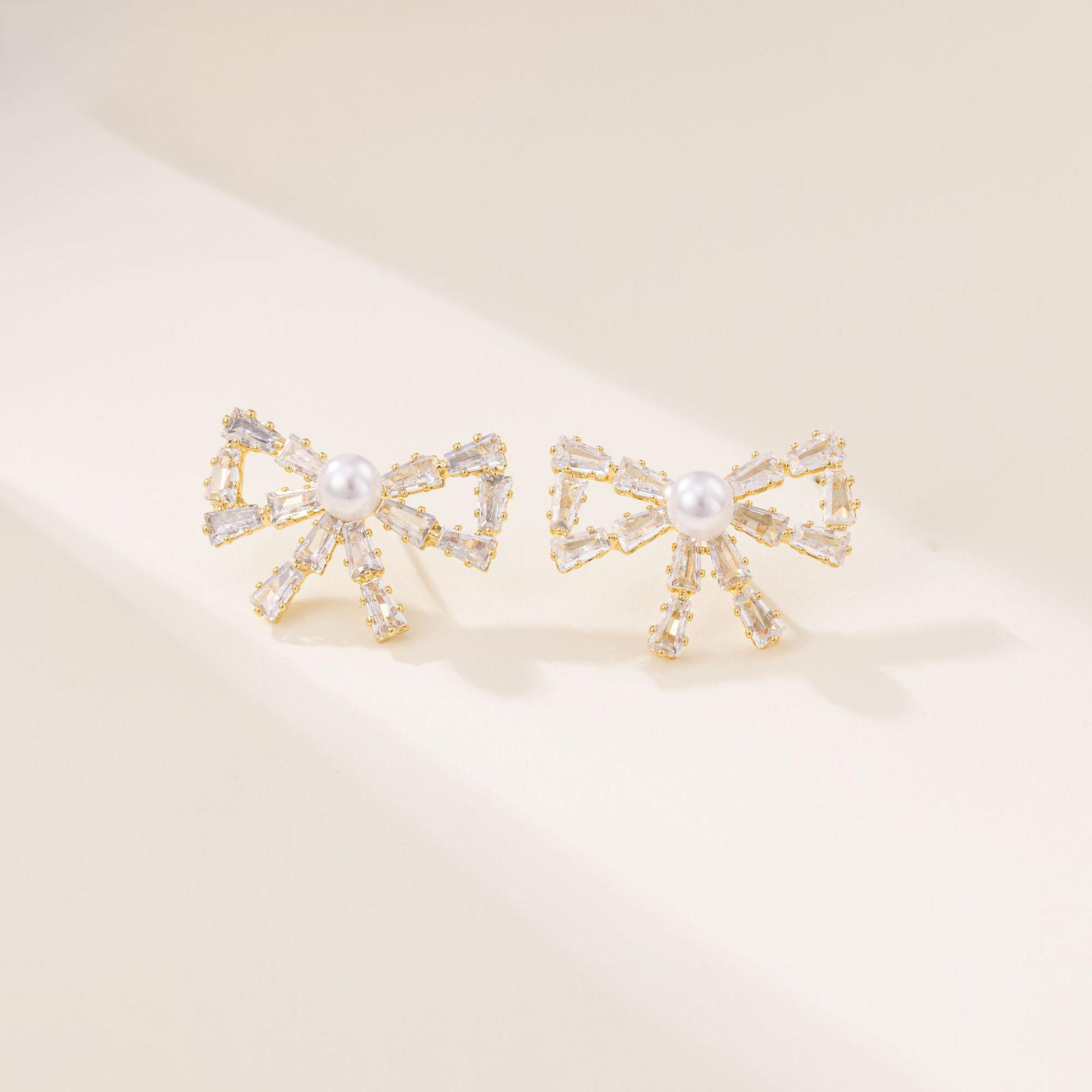 Серьги-бантики с цирконом и серебряной иглой - подарок на День святого Валентина TE01494