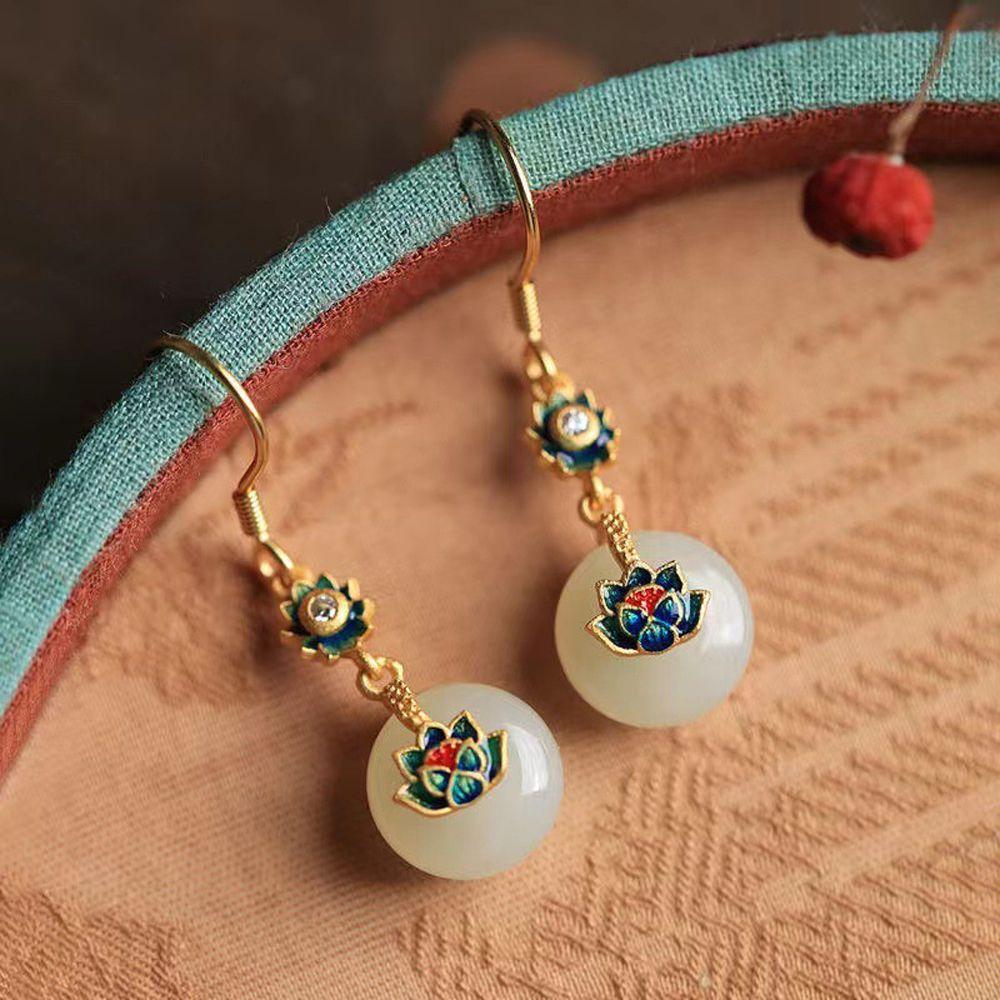 Серьги в стиле ретро-лотоса в китайском стиле с каплями воды, старинные серьги, аксессуары для ушей, женские серьги-капли