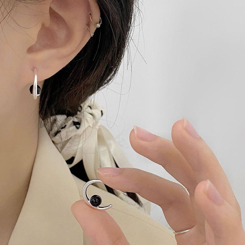 Серьги в форме буквы C из черного агата. Персонализированные модные и холодные серьги в стиле Ins.