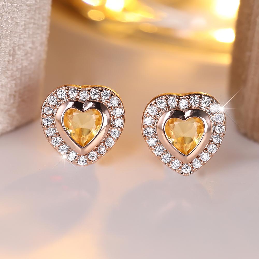 Серьги-гвоздики в форме сердца из розового золота для женщин, блестящие красные, зеленые, синие, циркониевые, маленькие, модные, ювелирные изделия, подарок на вечеринку розового золота/жёлтый
