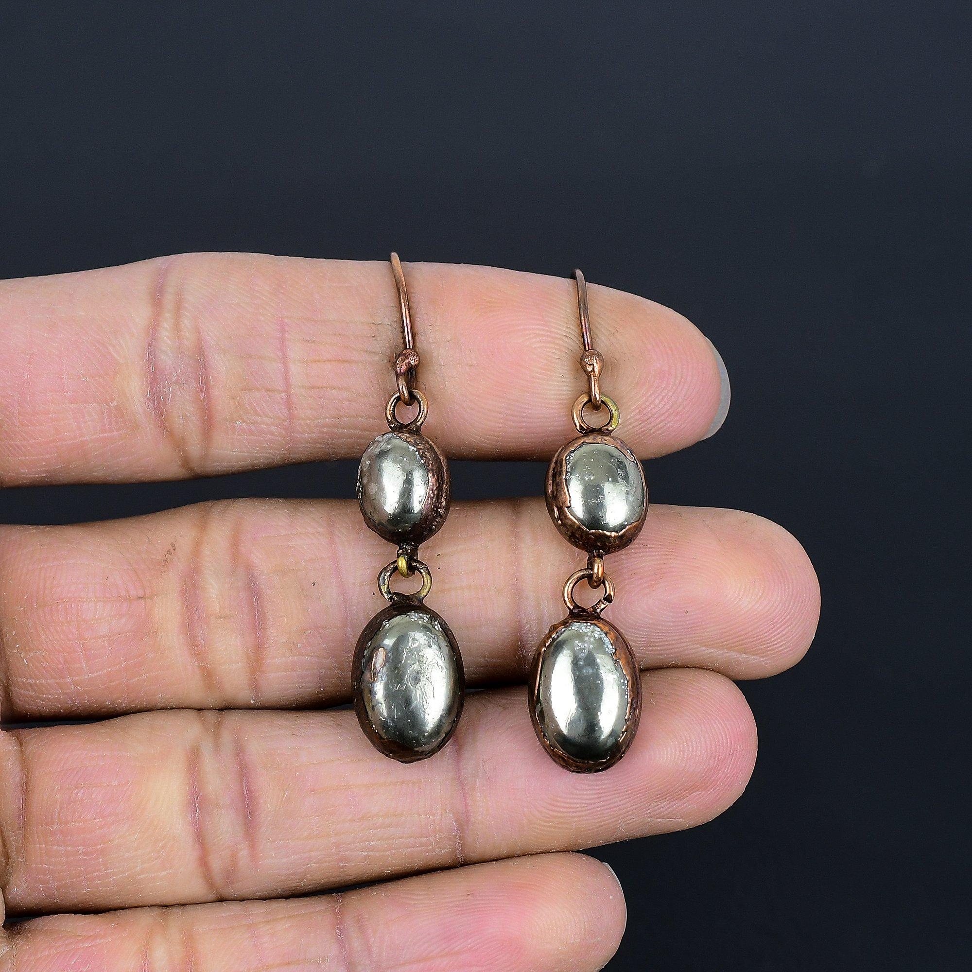 Серьги из золотистого пирита апачей, Ювелирные изделия из меди, гальванопластика, Серьги с драгоценными камнями, Подарок для нее, Нежные украшения ручной работы