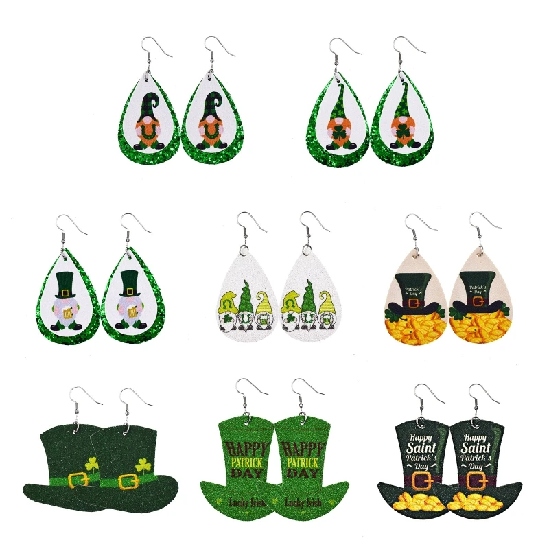 Серьги из искусственной кожи в форме капли на День Святого Патрика, зеленая шляпа, Шампанский клевер, Висячие капли, модные украшения для же...