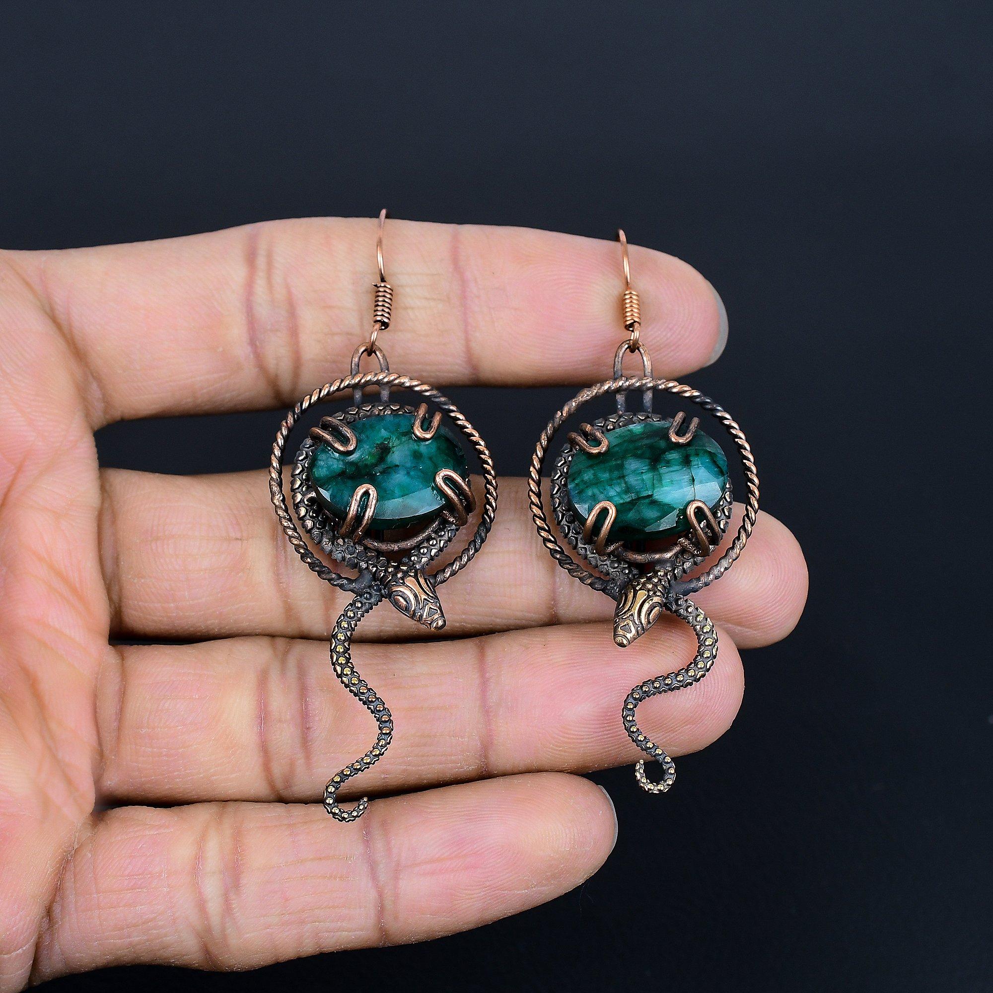 Серьги из медной проволоки 999 пробы с изумрудом, Ювелирные изделия с драгоценными камнями ручной работы, Подарки для жены, Совершенно новые серьги 2.75 Inches