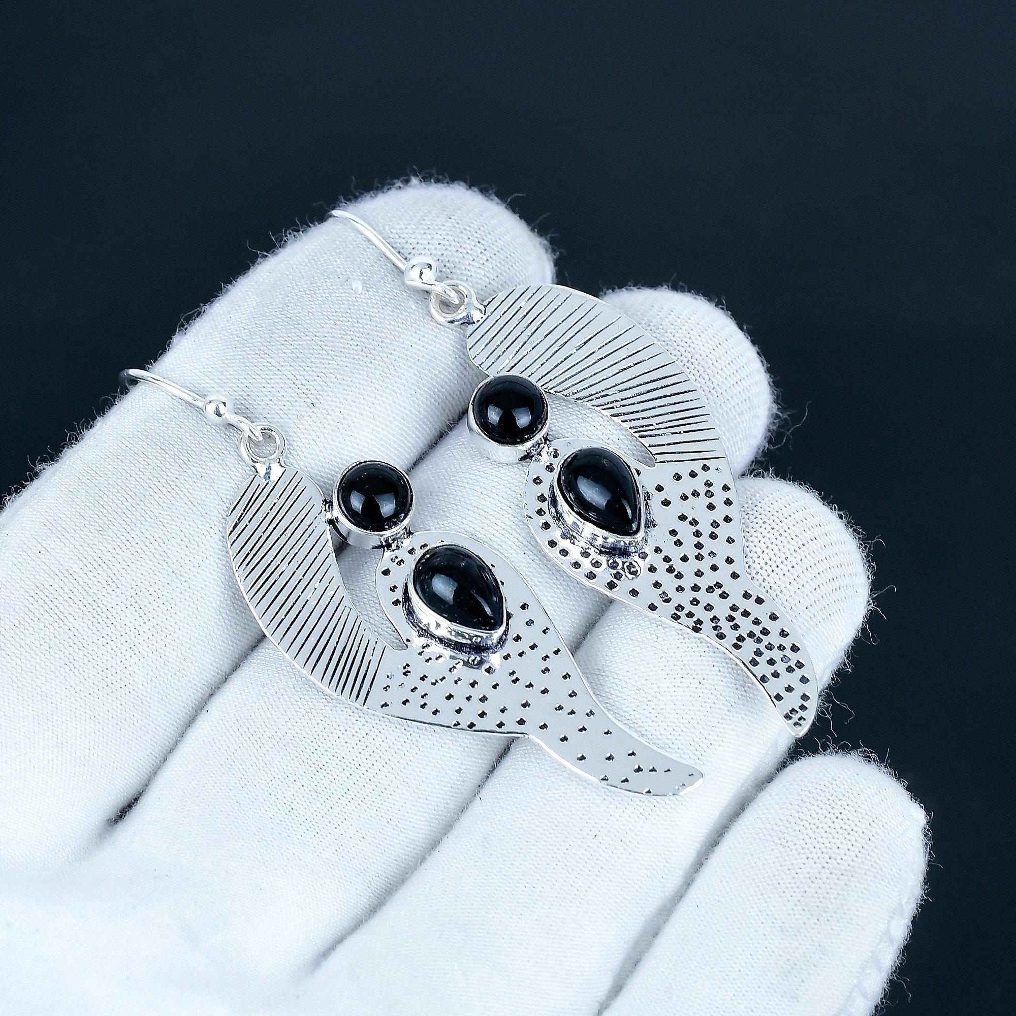 Серьги из натурального черного оникса, серьги из стерлингового серебра 925 пробы, серьги-подвески, серебряные украшения в стиле бохо ручной работы, подарок на День святого Валентина 7 Cm чёрный