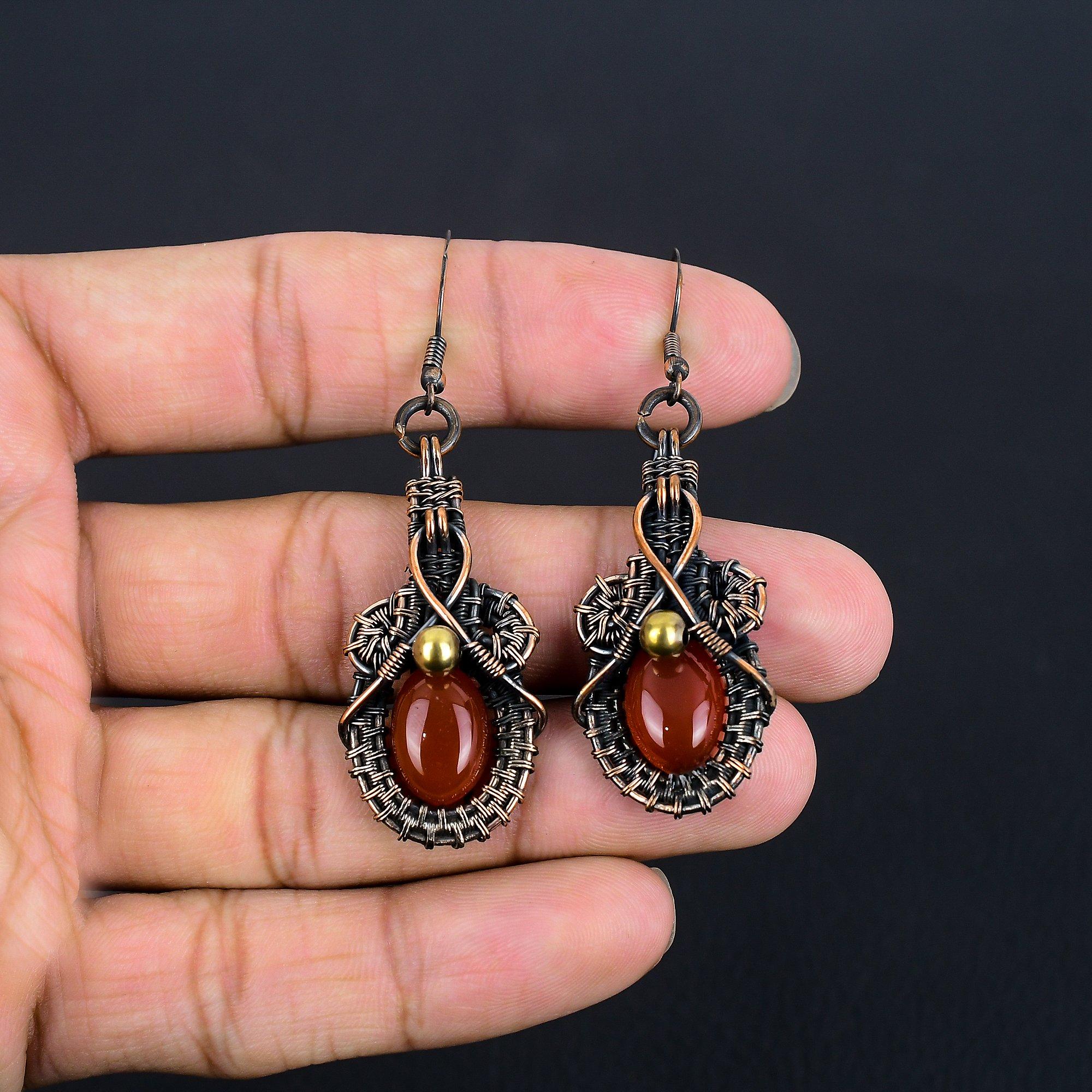 Серьги из сердолика, обернутые медной проволокой 999 пробы, Ювелирные изделия с драгоценными камнями ручной работы, Подарки для жены, Абсолютно новые серьги 1.77 Inches