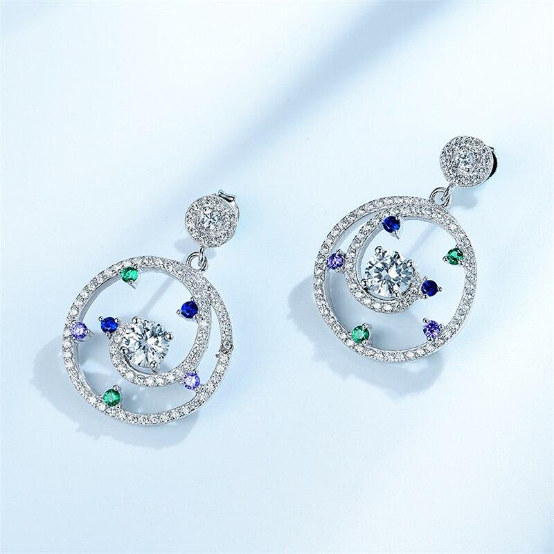 Серьги из стерлингового серебра 925 пробы для женщин, милые серьги для девочек, вращающиеся, разноцветные серьги-капли с цирконием, трендовые ювелирные изделия