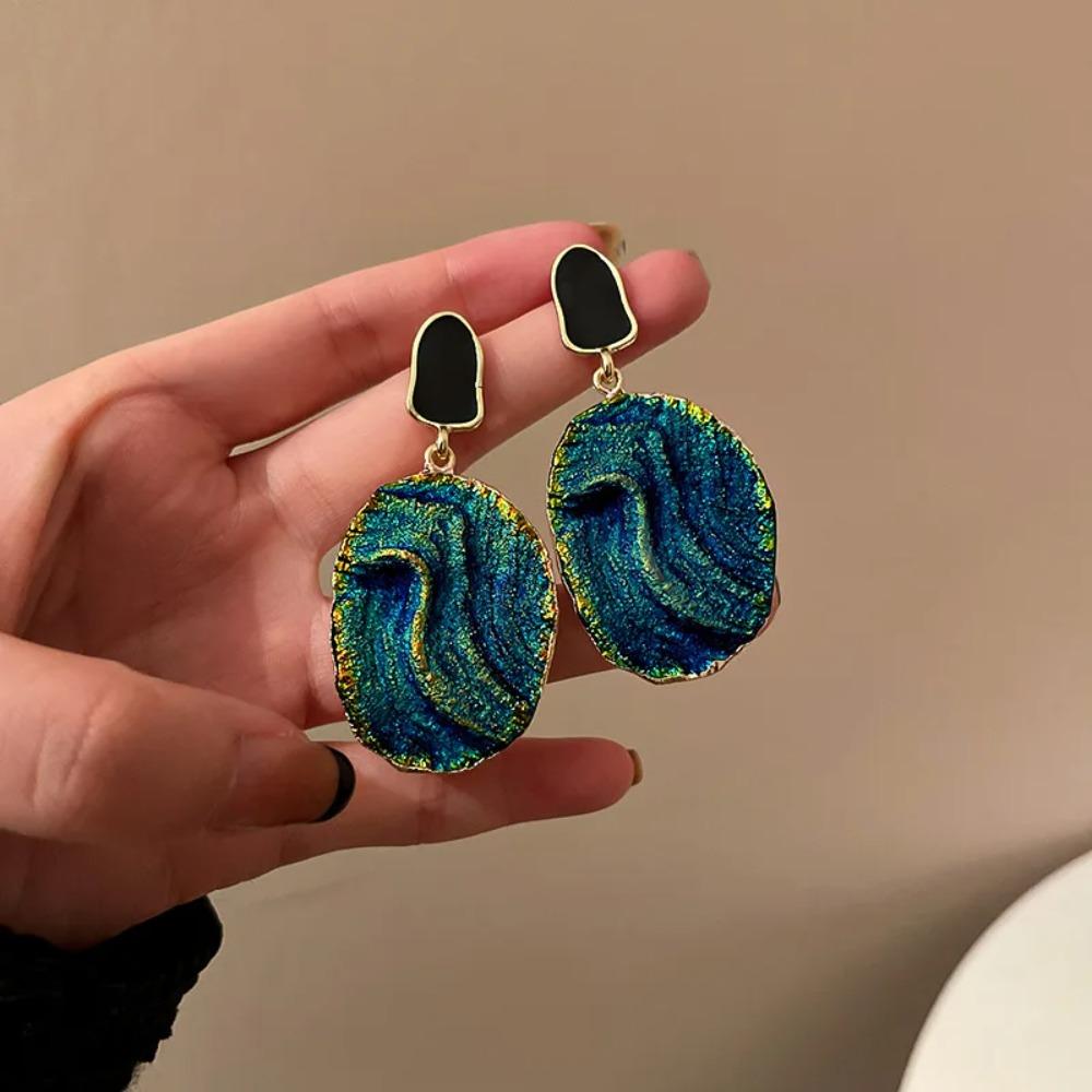 Серьги-капли из смолы с маслом для женщин, модные этнические серьги-капли, ретро, преувеличенные, персонализированные, с зеленым цирконом, подарок