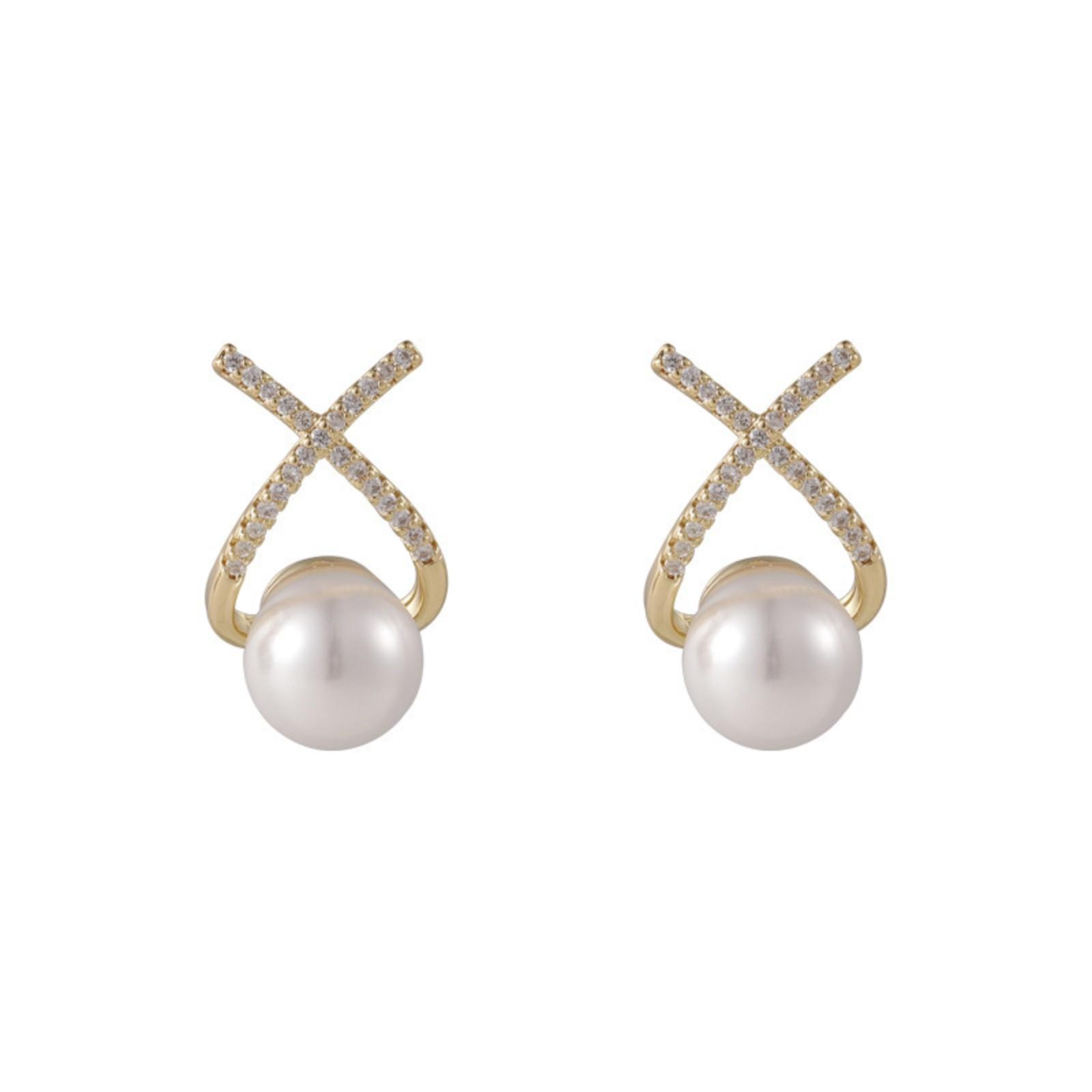 Серьги-крестики с жемчугом в форме буквы X, легкая роскошь, модный темперамент, серьги для интернет-звезды, женские One Size