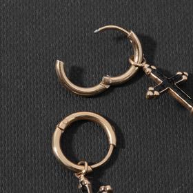 Серьги со стразами "Крестики мини" на кольце,цвет черный в золоте