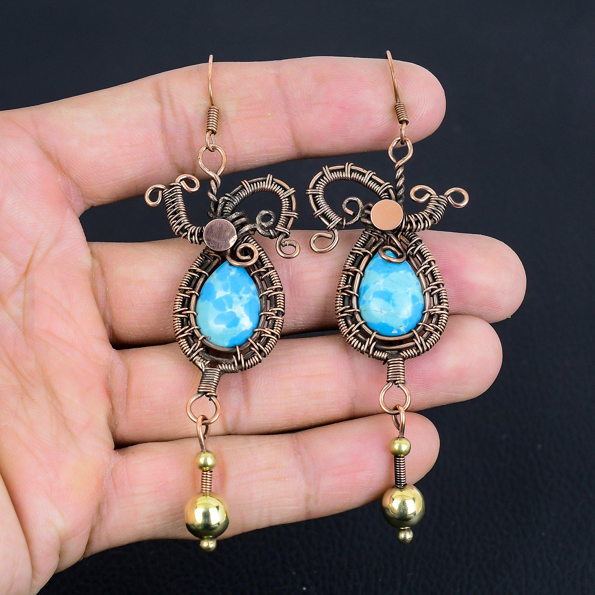Серьги с ларимаром, Ювелирные изделия, обернутые медной проволокой 999 пробы, Серьги с драгоценными камнями, Подарок для нее, Изящные ювелирные изделия ручной работы 3.55 Inches