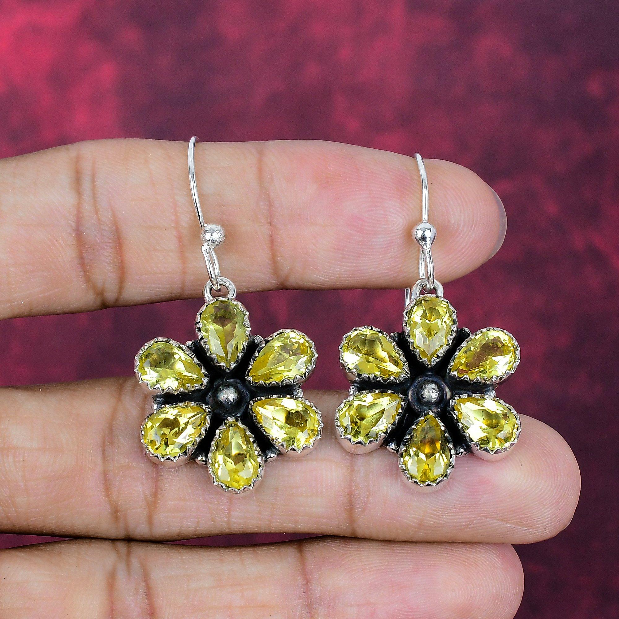 Серьги с цитрином, Драгоценный камень Ручная работа Цельное серебро 925 пробы Ювелирное изделие Серьга, На День благодарения 1.77 Inches жёлтый
