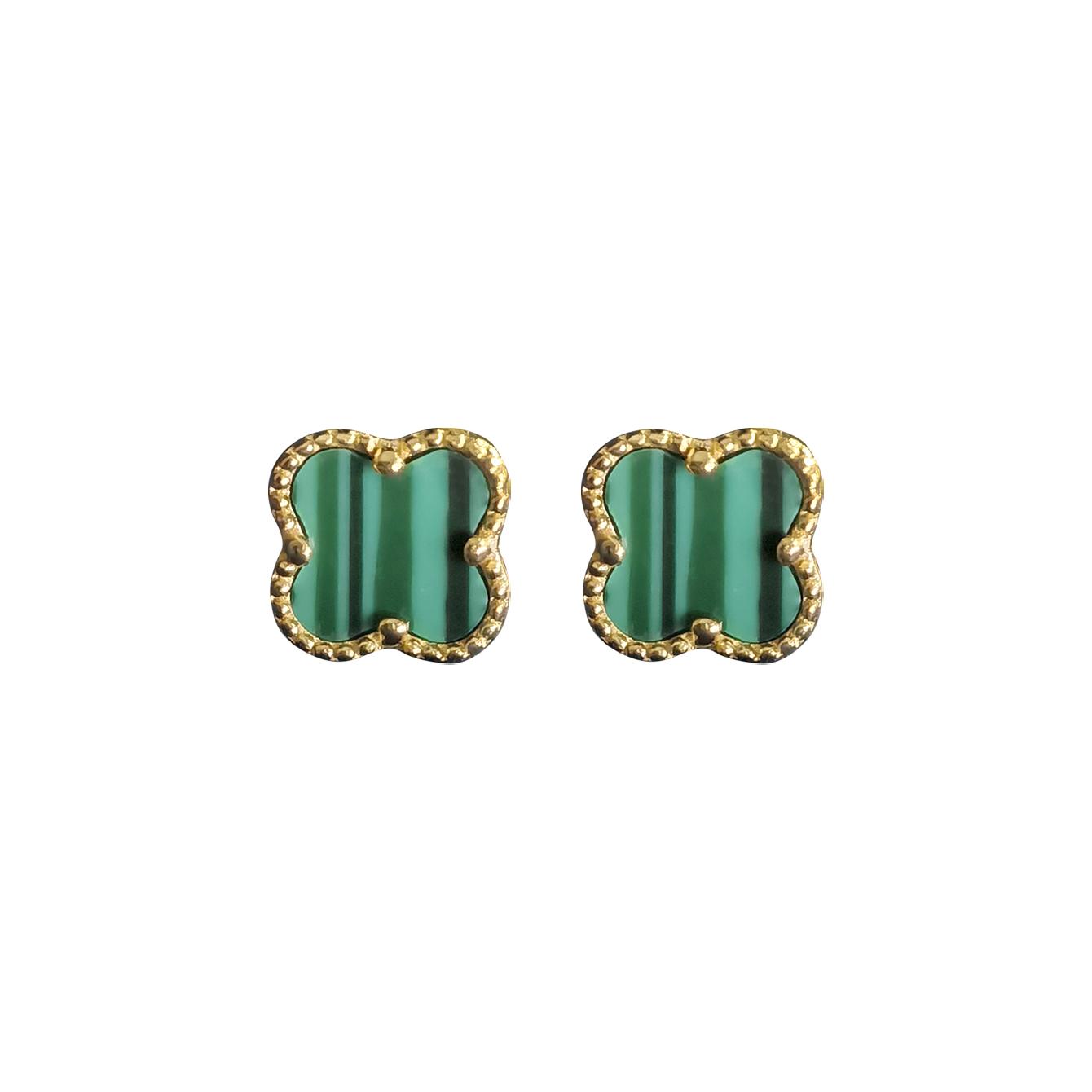 Серьги 7 мм с четырехлистным клевером, малахитовые, серебряные, 925 пробы, подарок на День святого Валентина зелёный