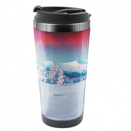 Landscape Travel Mug Sunset Snowy Winter Steel Thermal Cup 16 oz by Ambesonne