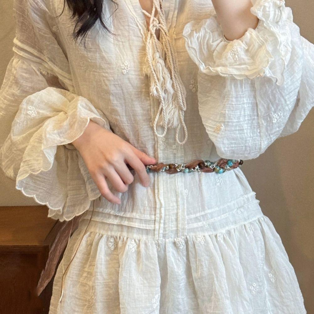 Сетчатая плетеная повязка на голову многофункциональная женская цепочка на талию модная повязка на голову с бусинами женская коричневый