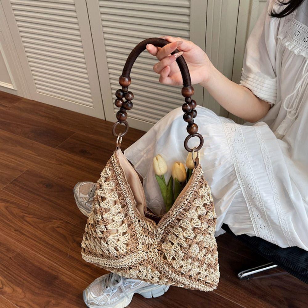 Сетчатая плетеная сумка из соломы, пляжная сумка, сумка через плечо, милая богемная пляжная сумка, для отпуска хаки