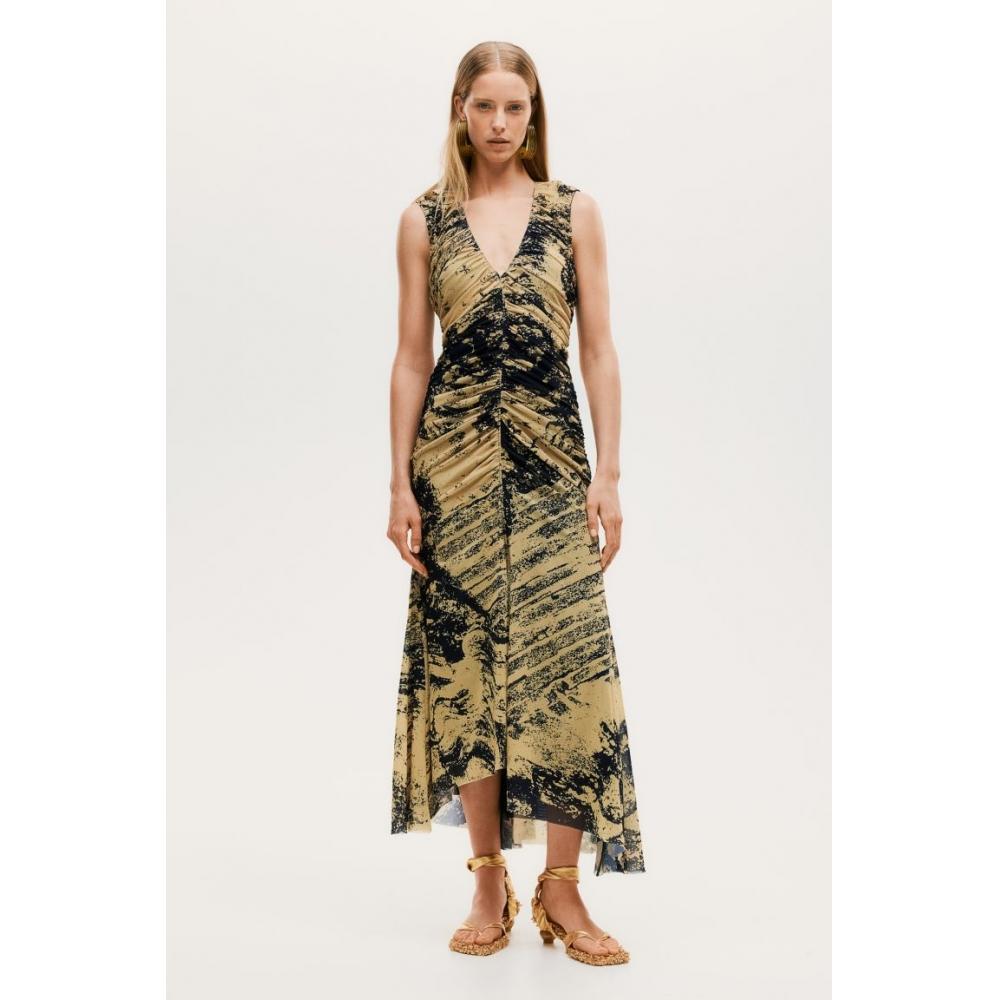 Сетчатое платье с узором HM пастельно-желтого цвета