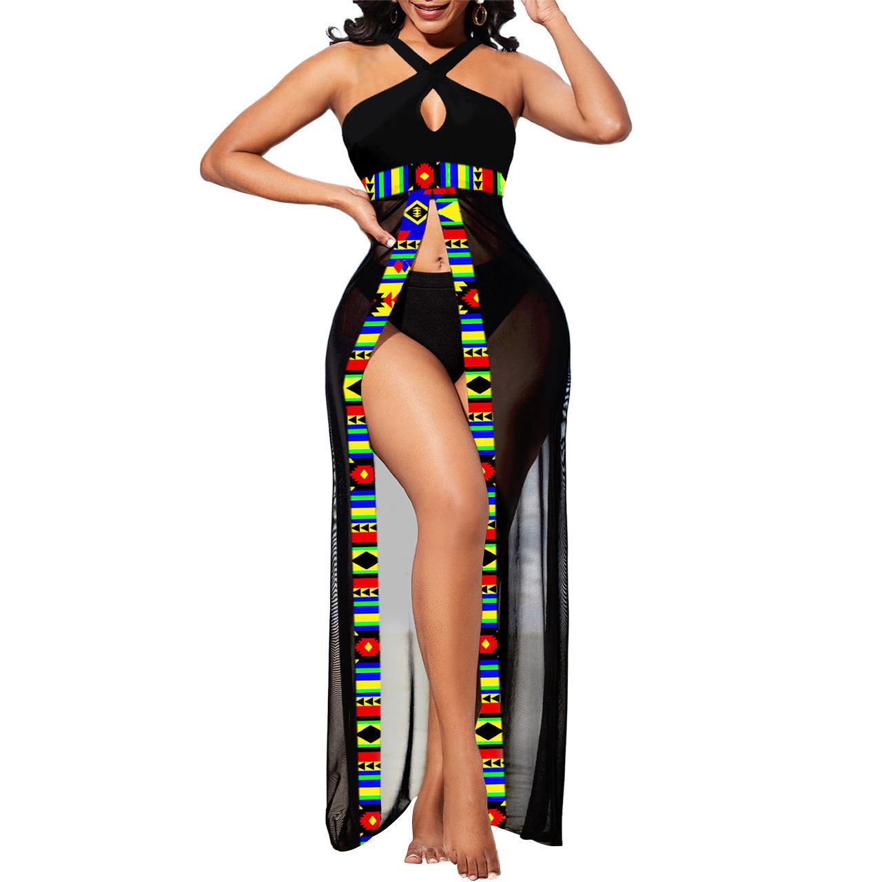 Сетчатое пляжное платье макси на бретелях, женское сексуальное прозрачное облегающее платье на шнуровке с открытой спиной, длинное Клубное вечернее платье, бикини, накидка XXL чёрный